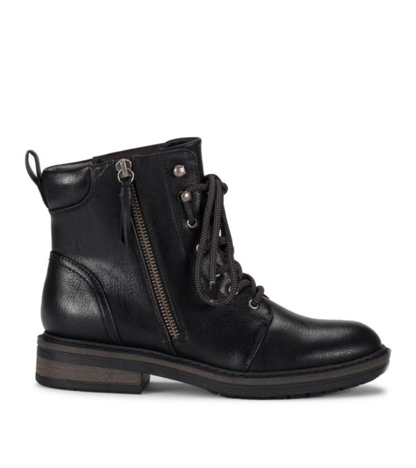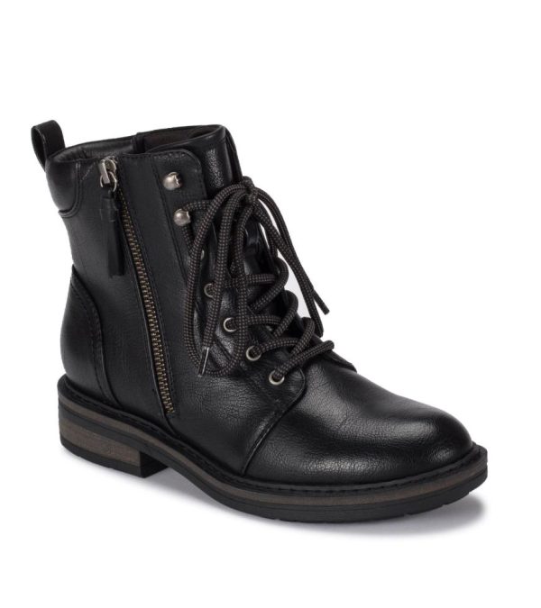 Lace-up with the Baretraps Amysue Lug Booties! Crafted with 100% vegan materials, these chic combat style booties are a compliment to any outfit while still adding the touch of soothing comfort Baretraps insoles are known for. A lace up upper with an interior zipper makes them easy on/off and the flexible outsole will keep you wearing them all day long. Discover where fashion meets function with the Baretraps Amysue Bootie.
