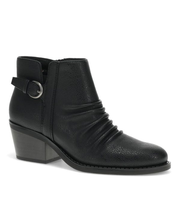 The Baretraps Linnea Ruched Bootie is a stylish and comfortable option crafted with your needs in mind. Made with vegan materials, this bootie prioritizes ethical and sustainable design without compromising on quality.The cushioned insole provides all-day comfort, while the inside zipper closure ensures a secure and easy fit. The almond toe shape offers a sleek, modern silhouette, complemented by the eye-catching metal buckle ornament.One of the standout features of the Linnea Bootie is the ruching detail on the forefoot, adding a touch of texture and visual interest to the design. Topping it off is the wrapped block heel, providing both stability and a touch of height for a flattering, versatile look.